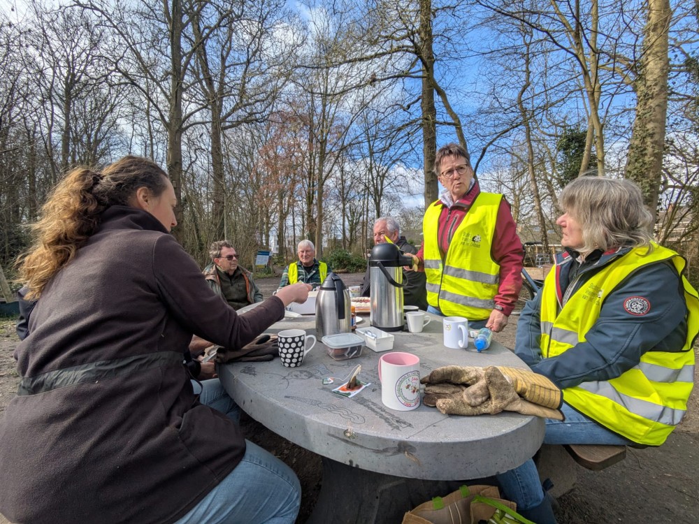 Het was een gezellige en productieve ochtend waarin veel werk is verzet. Zoals inmiddels traditie is bij NLdoet, sloten we de ochtend af met koffie en thee en natuurlijk een stuk taart voor alle vrijwilligers.